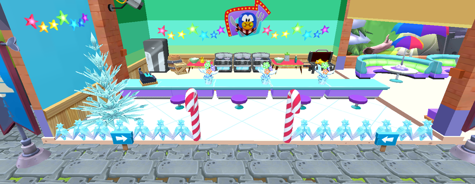 También se puede hacer con las edificaciones Tienda de la Calle Principal: "Un espacio doble para tienda. ¡El negocio va viento en popa!" que tiene un costo de 175 monedas y Tienda de la Esquina: "Una espacio individual para una tienda que va genial junto a un iglú" que cuesta 125 monedas. Las imágenes son del set del Capitulo 1 de The Time Machine, una historia original de Latin Penguin. Para leer la historia haz clic en el siguiente enlace: https://dsbortiz.wixsite.com/latinpenguin/post/the-time-machine-scrooge-and-the-penguins-of-the-future-part-1